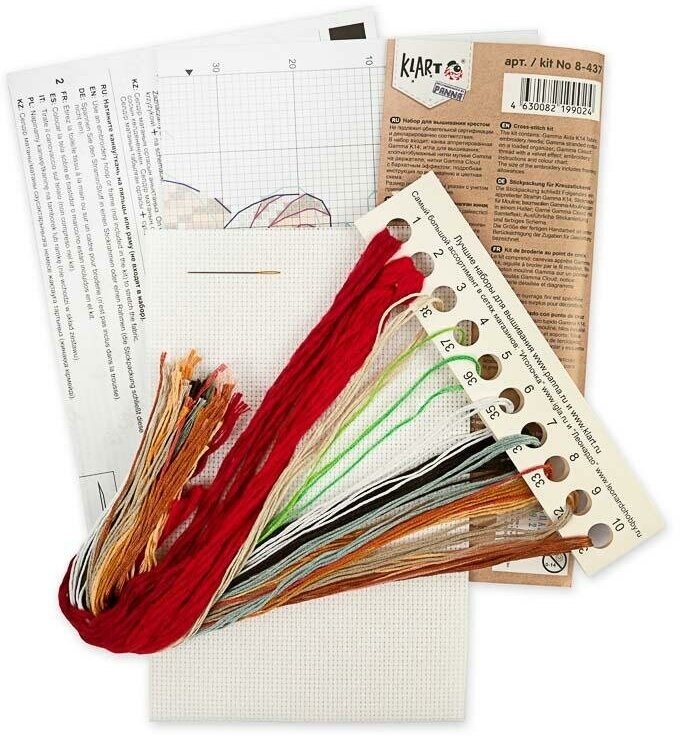 | В набор входит | канва Аида 14, мулине, игла, цветная символьная схема, инструкция, Нитки Gamma Cloud с бархатным эффектом |