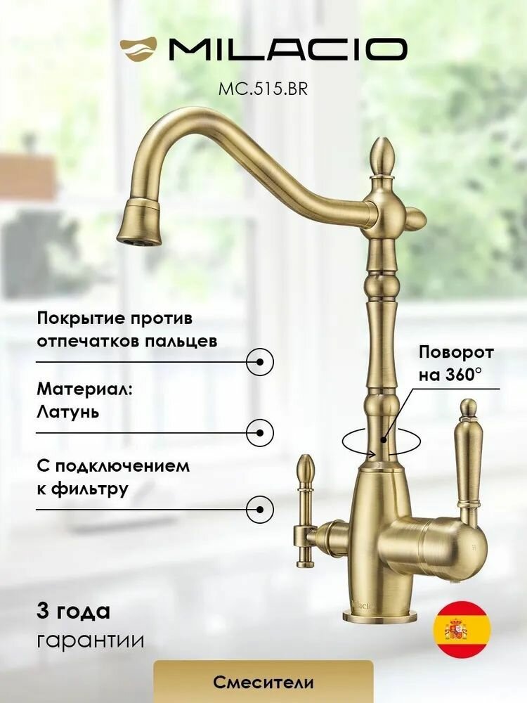 Сервис сравнения цен СкидкаГИД предлагает сравнить цены на товар «Смеситель для кухни Milacio Castellon Ceramic MC.515.BR Бронза»