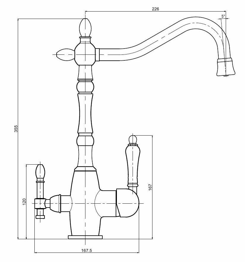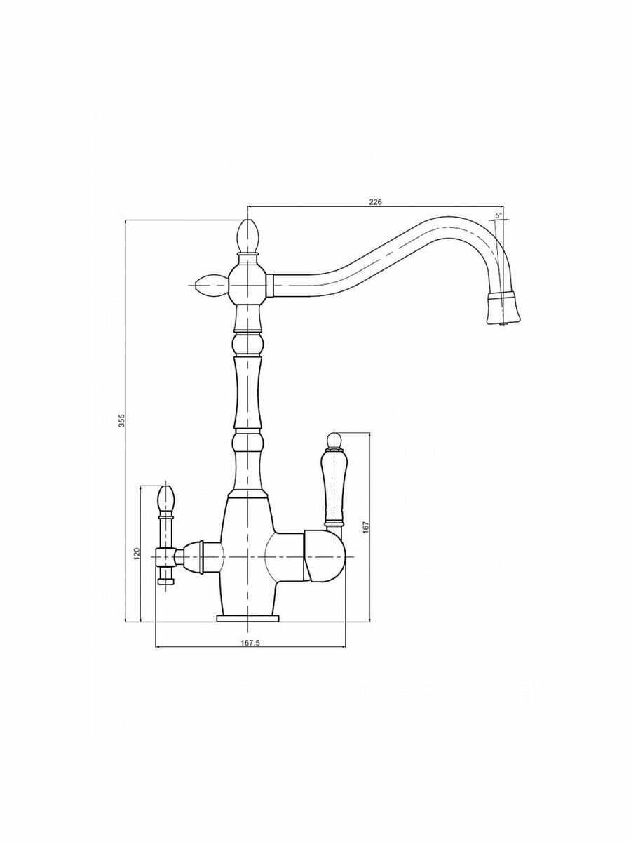Латунный смеситель классической формы с возможностью подключения фильтра питьевой воды (2 в 1). Для кухни. Подводка 1/2 и крепеж в комплекте.