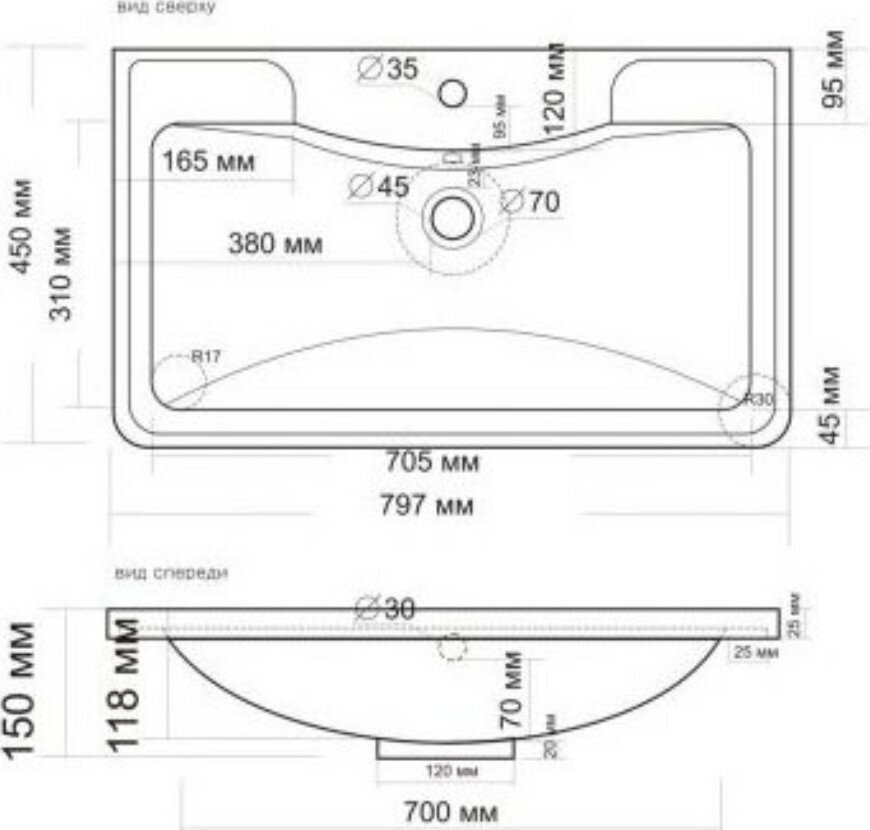 | Вид раковины | встраиваемая сверху,накладная (мебельная) |