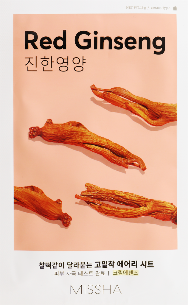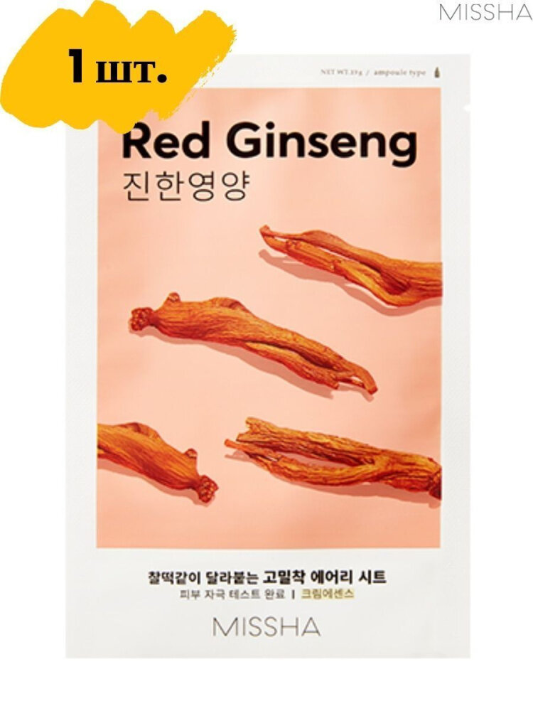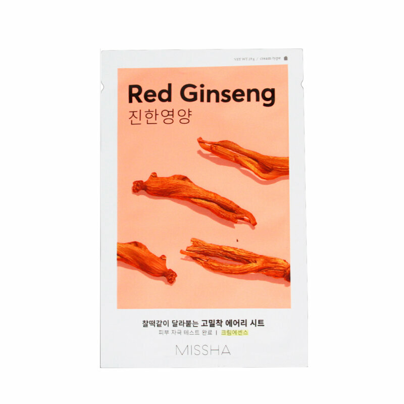 Маска Airy Fit Sheet Mask Red Ginseng с красным женьшенем улучшит микроциркуляцию крови, тем самым запустит регенерацию клеток эпидермиса.