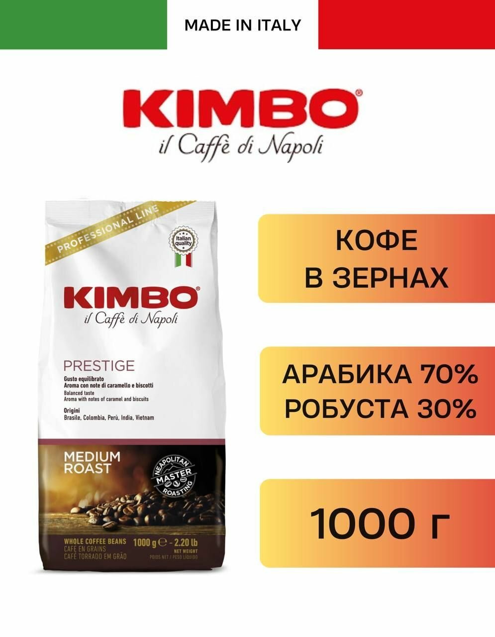 Кофе Kimbo Prestige отличное сочетание Южноамериканской и Бразильской арабики и качественной робусты. Идеально подходит для приготовления и эспрессо и капучино, и латте. Благодаря своей универсальности и восхитительному вкусу эта смесь часто используется в кафе и ресторанах. Не содержит добавок и ароматизаторов. Только натуральный зерновой кофе. Вакуумная упаковка со специальным клапаном.