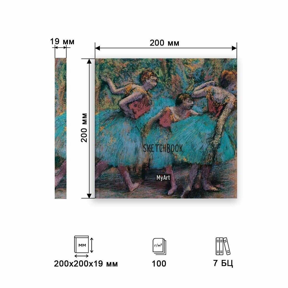 Квадратный скетчбук. Эдгар Дега. Три танцовщицы в синих пачках с красным корсажем Проф-Пресс