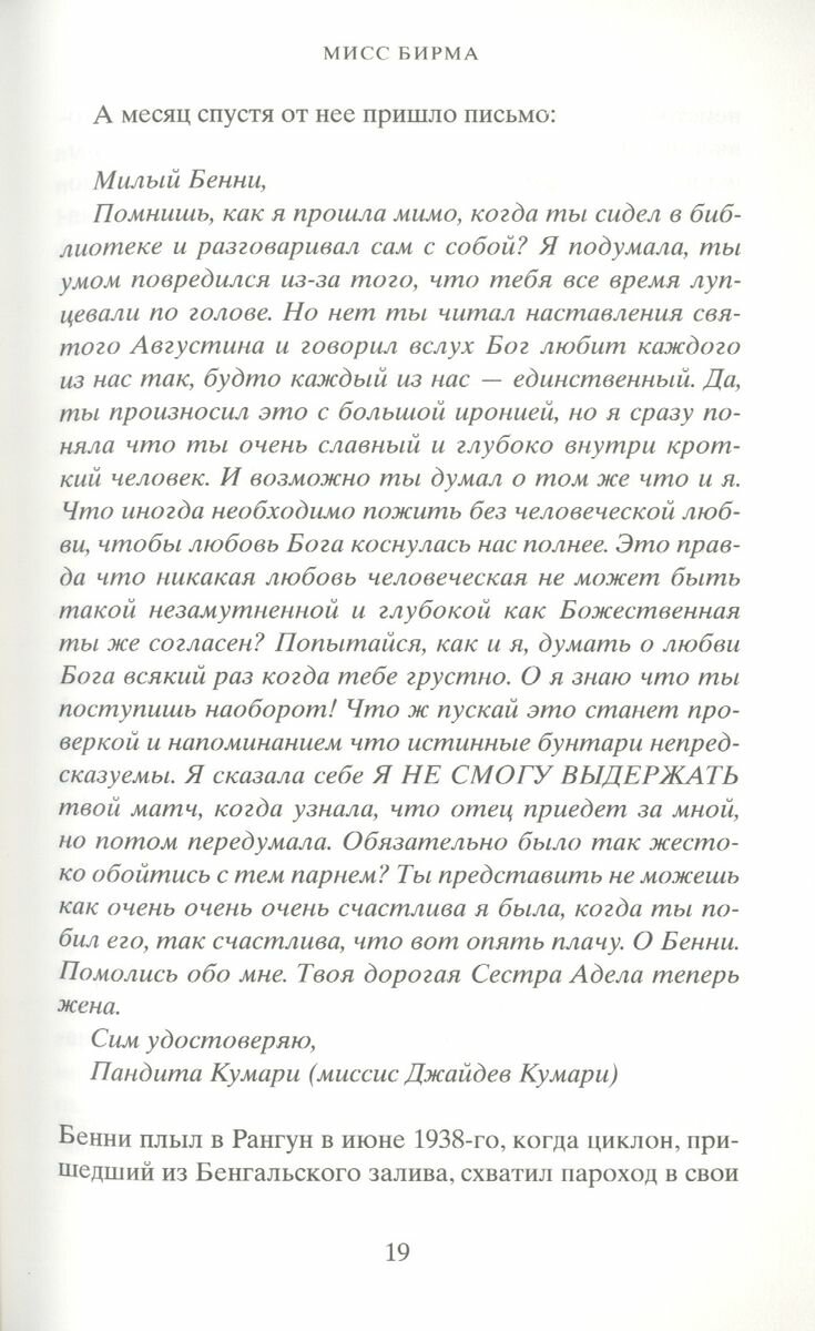 …Жизнь Луизы Бенсон интересна сама по себе, но для интересующихся историей региона книга вдвойне ценна — не так уж много у нас выходит романов по Юго-Восточной Азии, по Мьянме так особенно.