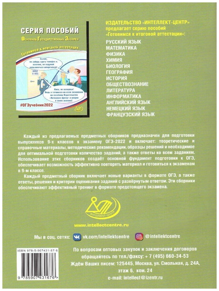 Данное пособие предназначено для подготовки учащихся 9 классов к государственной итоговой аттестации - Основному государственному экзамену (ОГЭ) по химии. Издание включает типовые задания по всем содержательным линиям экзаменационной работы, а также примерные варианты в формате ОГЭ 2022 года.