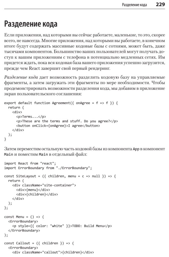 Начинаю читать, автор последовательно излогает материал. На первых страницах рассказыает о нововедениях в JavaScript последней спецификации, разбирает понятие декларативного и императивного программирования, последовательно разбирает парадигму работы React и уже после начинает с объяснение этой библиотеки. В других книгахсерии O'REILLY не все авторы настолько грамотно и постепенно доносят основопологающие концепты.