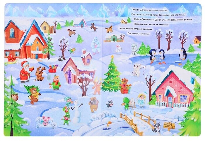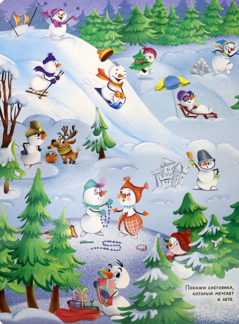 Встречайте новогодний виммельбух! Вместе с ним вы отправитесь в весёлое зимнее путешествие. Разглядывать яркие забавные картинки со множеством деталей понравится не только детям, но и взрослым. Сможете ли вы найти все спрятанные предметы и отгадать все загадки? Открывайте книгу - и давайте проверим, насколько вы внимательны!