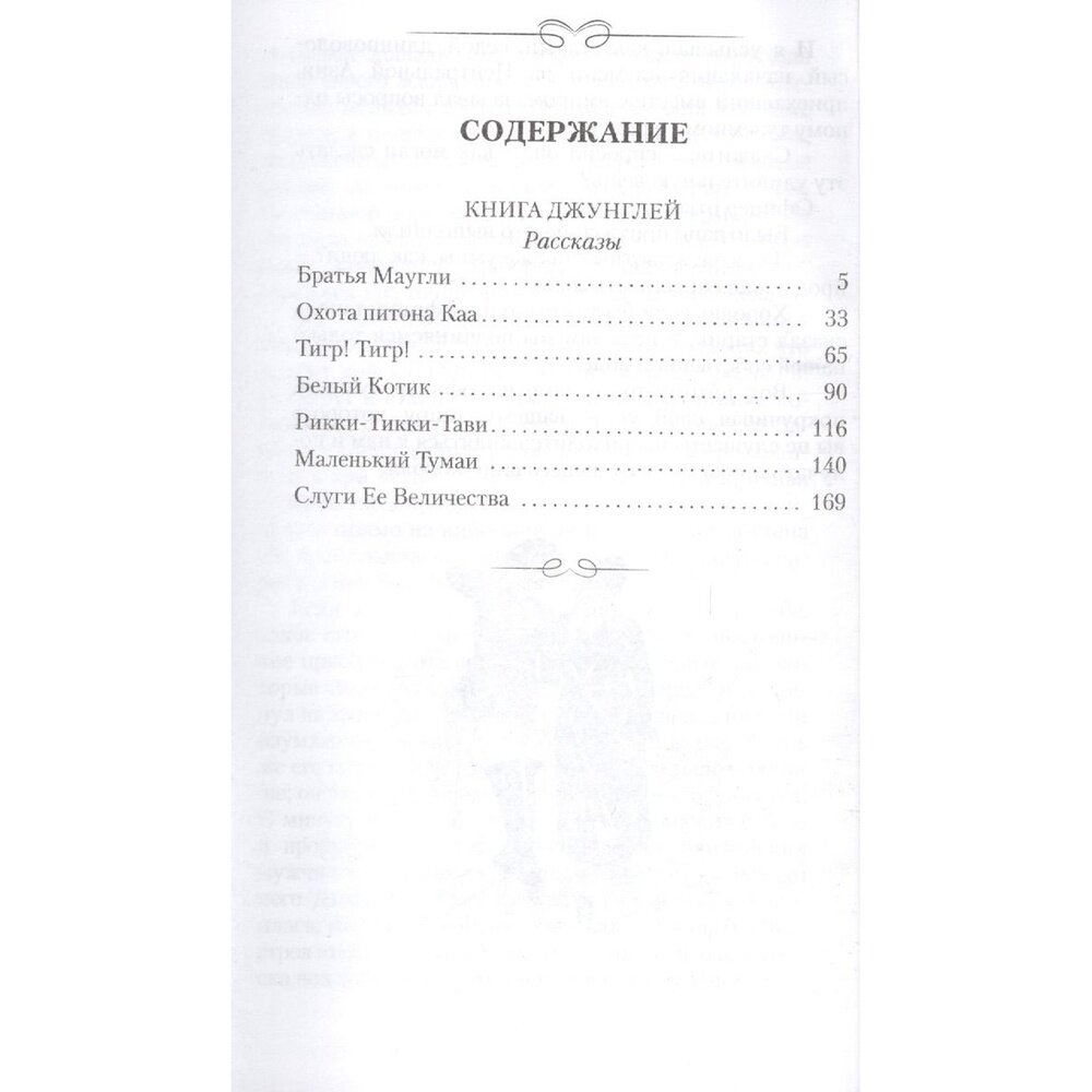 "Книга джунглей" – знаменитый сборник рассказов самого молодого лауреата Нобелевской премии по литературе, "англичанина с душой индуса" Редьярда Киплинга. Герои этих удивительных историй – выросший в семействе волков мальчик Маугли, бесстрашная пантера Багира, мудрый медведь Балу, отважный мангуст Рикки-Тикки-Тави и многие другие – любимы читателями разных возрастов и многих поколений во всем мире.