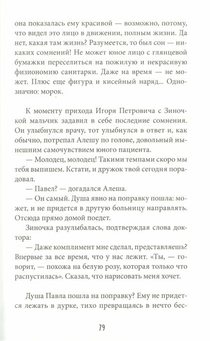 Покупала книгу ребенку-девочке 11 лет. Перед приобретением прочитали описание - заинтересовало. Дочь прочитала на одном дыхании, практически за несколько дней. Причем, мы только-только выписались из больницы, поэтому история была как никогда актуальна. Описывает жизнь мальчика в больнице. История, по словам дочки, очень интересная, рекомендуем к покупке и прочтению!