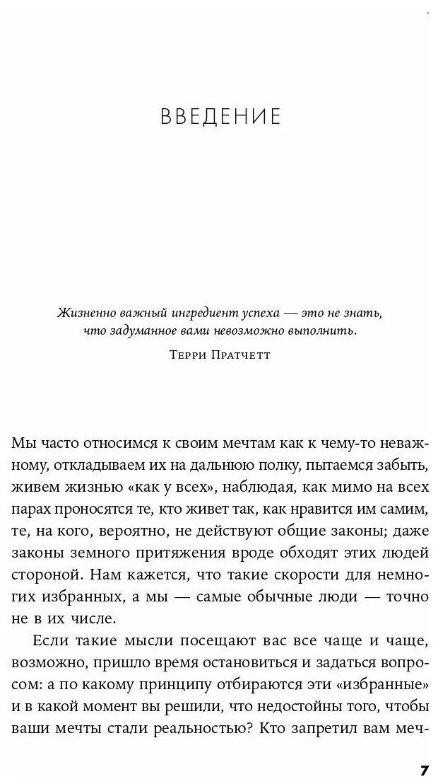Эта книга не о том, как заработать миллион, моментально достичь процветания в бизнесе и очаровать всех людей на пару километров вокруг. Она о том, как понять, чего вы хотите на самом деле, и разрешить себе стремиться к цели, пусть даже другие крутят пальцем у виска. Ее автор, психолог-консультант Наталья Керре, поможет вам понять и полюбить самих себя — настоящих, без навязанных обществом масок. Она пишет о том, что останавливаться необязательно в любом возрасте, а делать всегда по-своему — добродетель, ведущая напрямик к счастью. Если вы хотите выбраться из состояния «всё хорошо, но ничего хорошего» и сделать свою жизнь такой, какую раньше не могли даже вообразить, скорее переворачивайте страницу и читайте.