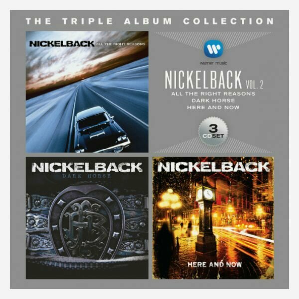 CD1: All The Right Reasons (2005)1. Follow You Home2. Fight For All The Wrong Reasons3. Photograph4. Animals5. Savin' Me6. Far Away7. Next Contestant8. Side Of A Bullet9. If Everyone Cared10. Someone That You're With11. RockstarCD2: Dark Horse (2008)1. Something In Your Mouth2. Burn It To The Ground3. Gotta Be Somebody4. I'd Come For You5. Next Go Round6. Just To Get High7. Never Gonna Be Alone8. Shakin' Hands9. S. E. X.10. If Today Was Your Last Day11. This AfternoonCD3: Here And Now (2011)1. This Means War2. Bottoms Up3. When We Stand Together4. Midnight Queen5. Gotta Get Me Some6. Lullaby7. Kiss It Goodbye8. Trying Not To Love You9. Holding On To Heaven10. Everything I Wanna Do11. Don't Ever Let It EndTriple Album Collection (Vol. 2) - бокс-сет от Nickelback, изданный в 2014 году и состоящий из трех компакт-дисков. На них представлены пятый, шестой и седьмой студийные альбомы группы: All The Right Reasons (2005), Dark Horse (2008), Here And Now (2011).