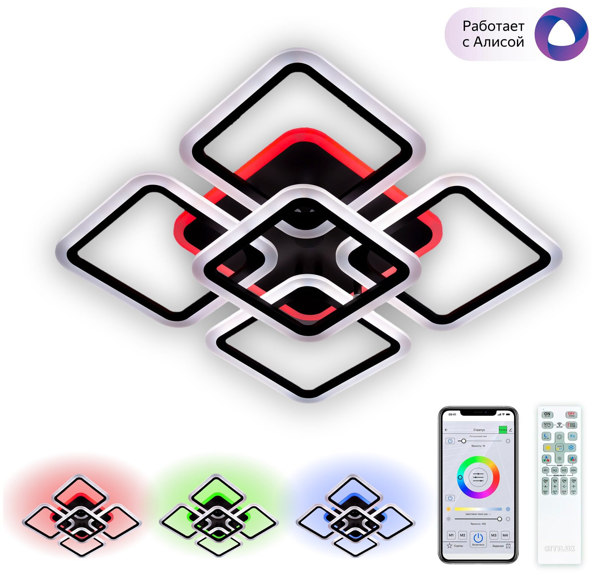 - Citilux Марсель Смарт CL232A150E RGB умная светодиодная люстра
