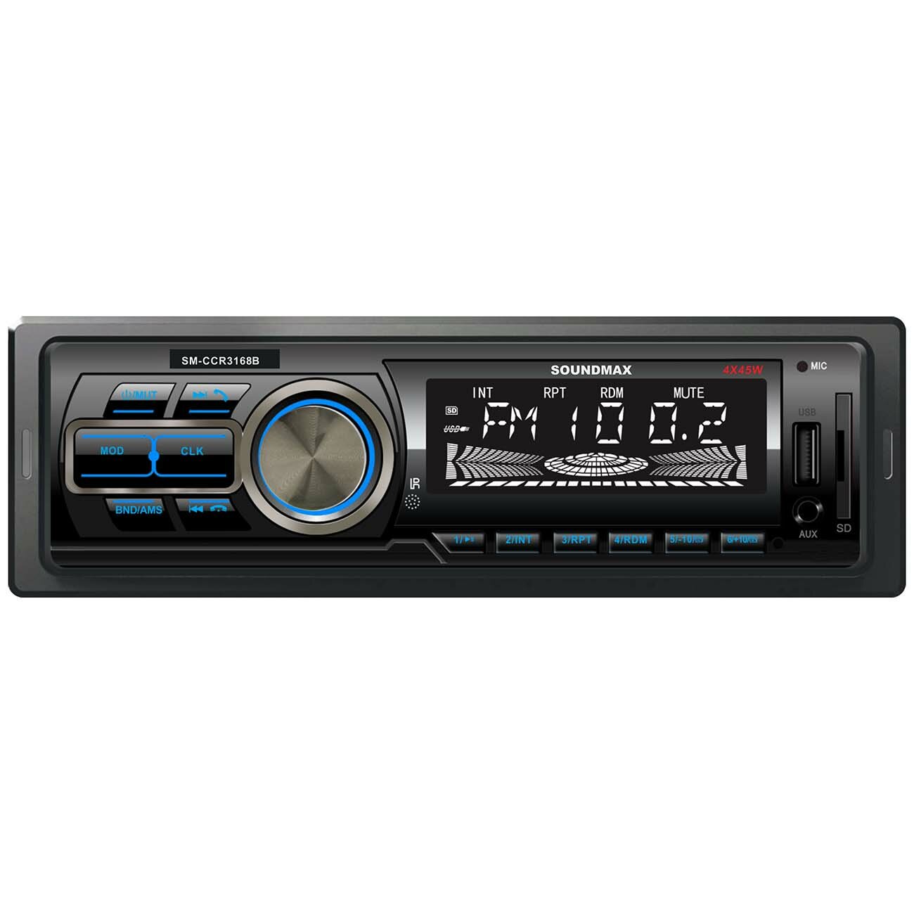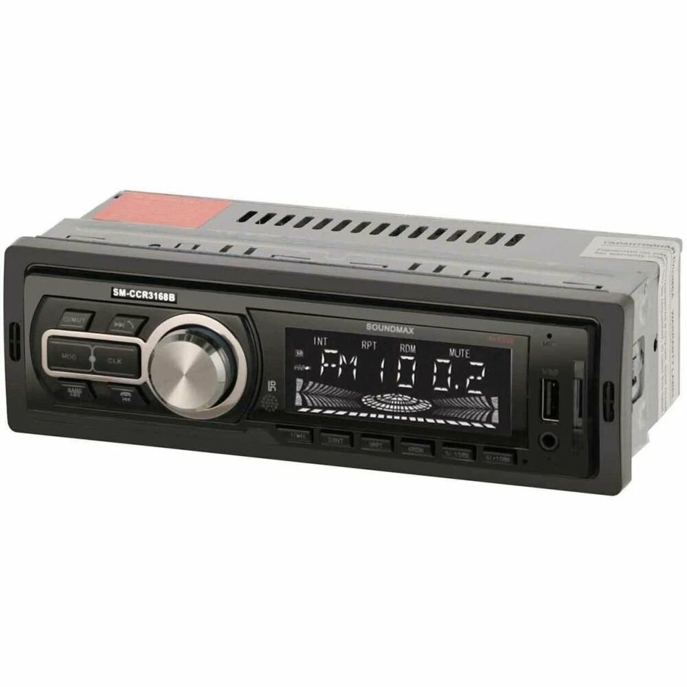 Магнитола Soundmax устанавливается в автомобили и получает питание от бортовой сети напряжением 12 В. Высокочувствительный цифровой тюнер принимает радиоканалы на многих вещательных частотах, а встроенная память позволит сохранить до 18 любимых станций.универсальностьУстройство транслирует музыку с разных носителей. Это могут быть флеш-карты USB и формата microSD объёмом до 32 Гб. Модуль Bluetooth сделает поездку комфортнее. Синхронизируйте магнитолу с совместимым смартфоном или планшетом и запускайте треки сразу с девайса. Благодаря встроенному микрофону вы сможете напрямую отвечать на входящие звонки, не беря в руки телефон и не отвлекаясь от дороги.удобноВ комплекте – все необходимые кабели и детали для подсоединения. Чтобы изменить настройки или переключить трек, вам не придётся наклоняться к магнитоле: в набор входит пульт дистанционного управления. Его роль также может играть смартфон – просто установите на него специальное приложение.