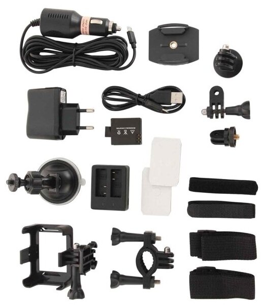 | Комплект поставки | Рамка для монопода; универсальное крепление; универсальный винт с креплением; универсальный переходник; прямоугольная платформа с 3М-скотчем; прямоугольный двухсторонний 3М-скотч х 2 шт.; универсальные ремешки х 4 шт.; кабель USB; автомобильное зарядное устройство,; переходник-крепление с резьбой; держатель на стекло автомобиля (присоска); сетевое зарядное устройство 220В; зарядное устройство на 2 АКБ; дополнительная АКБ 900 mAh |