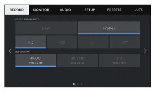 | Форматы записи | CinemaDNG RAW (полный, 3 1, 4 1), Apple ProRes (422 HQ, 422, 422 LT, Proxy) |
