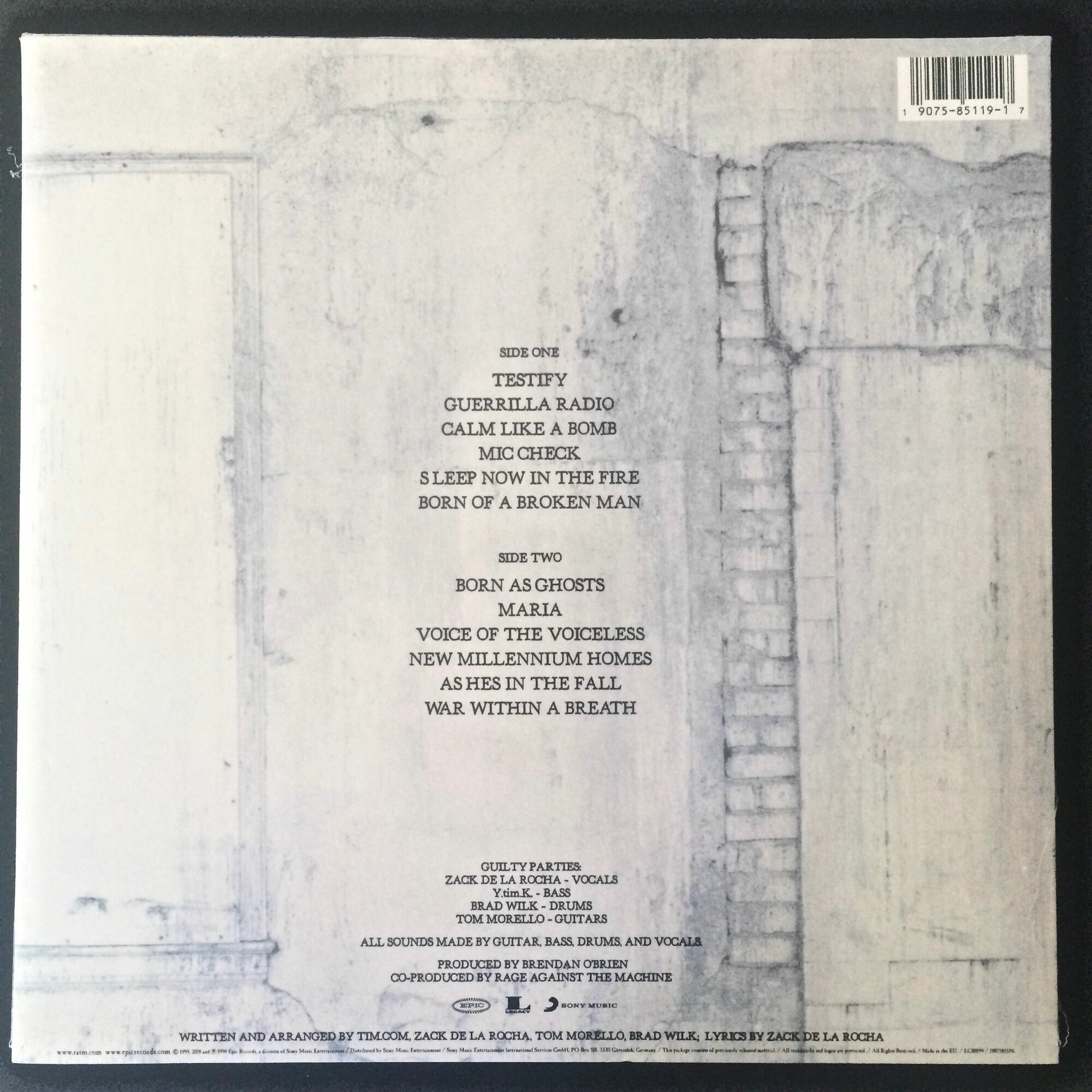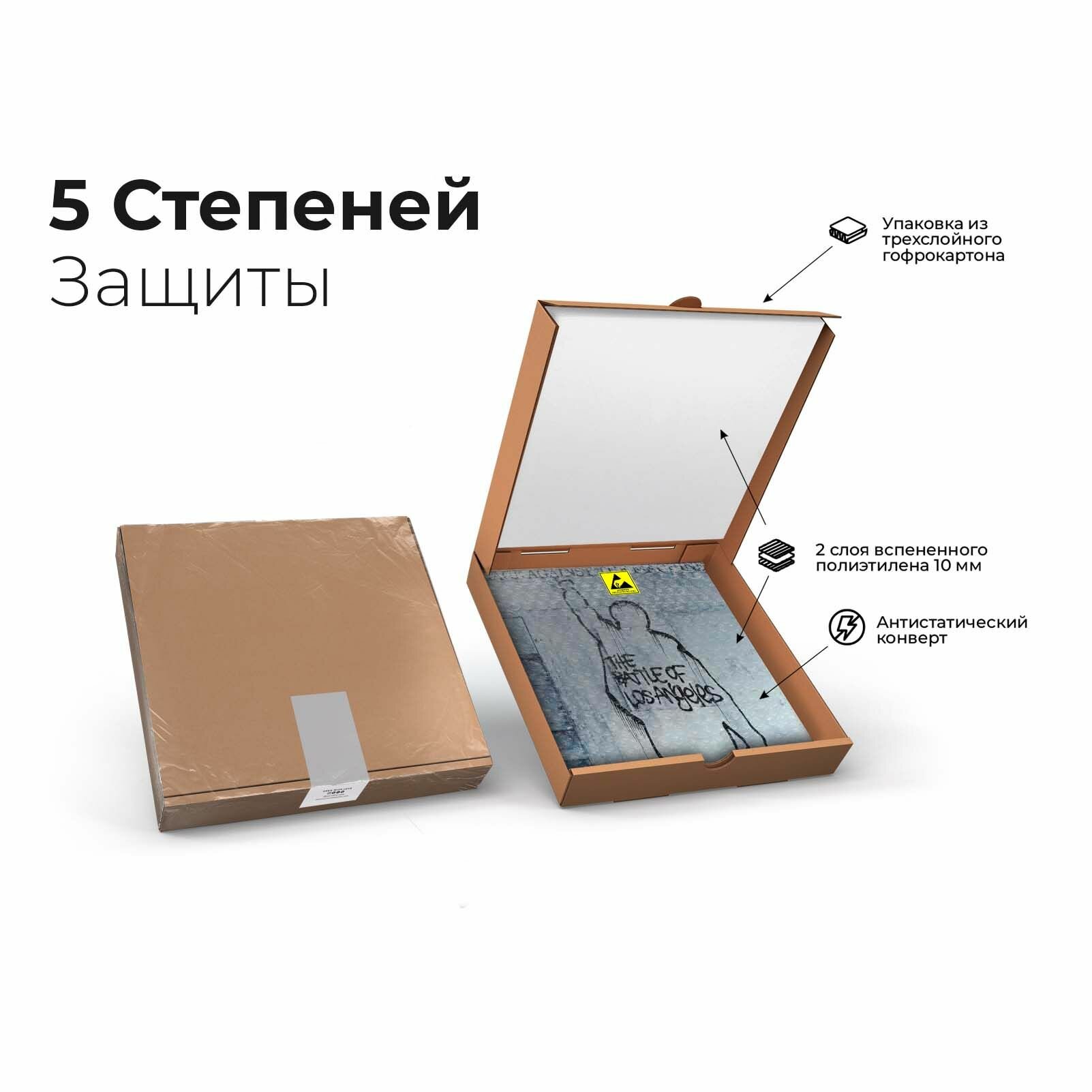 The Battle of Los Angeles (рус. Битва за Лос-Анджелес) — третий студийный альбом американской рэп-метал группы Rage Against the Machine, выпущенный 2 ноября 1999 года на лейбле Epic Records. Альбом стартовал с 1-й строчки в Billboard Top 200 и разошёлся в первую неделю продаж тиражом в 420 000 копий. Альбом занял 426-ю позицию в списке 500 величайших альбомов всех времён по версии журнала Rolling Stone. Это последняя полноценная запись группы, после него вышел лишь кавер-альбом Renegades (2000).Песня «Calm Like a Bomb» вошла в саундтрек к фильму «Матрица: Перезагрузка», на песни «Testify», «Sleep Now in the Fire», «Guerrilla Radio» и «No Shelter» были сняты видеоклипы. Режиссёром клипов для первых двух песен выступил Майкл Мур. Съёмки клипа «Sleep Now in the Fire», проходившие на Уолл-стрит привели к тому, что Нью-Йоркской фондовой бирже пришлось запереть двери из страха перед толпой фанатов. Во время съёмок клипа Майкл Мур подвергся аресту.Пластинку надежно и качественно упакуем для отправки. (воздушно-пузырьковая пленка + плотная картонная коробка)