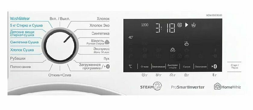 | Специальные программы | замачивание, быстрая стирка, настраиваемая программа, защита от сминания |