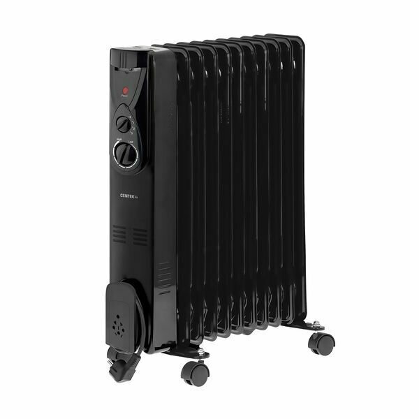 Выполненный из стали масляный радиатор Centek (Центек) рассчитан на обслуживание помещений средней площади. Пользователю доступна возможность для регулирования степени нагрева прибора. При хранении устройства шнур питания может быть размещен в специальном отсеке. Элегантная черная расцветка агрегата придаст дополнительного шарма интерьеру помещения.