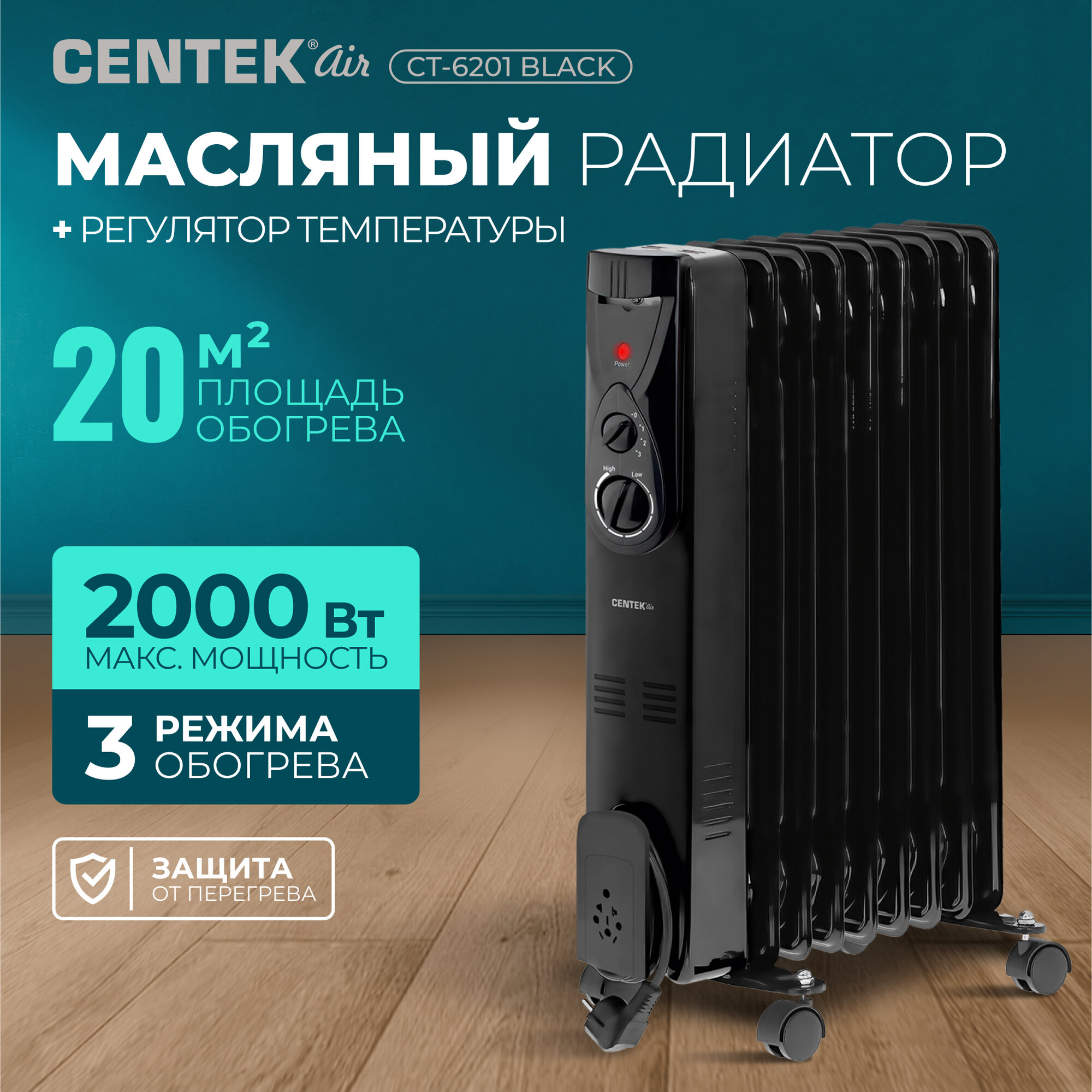 Масляный радиатор CENTEK 2500Вт 11 секций 3 режима черный [ black] CT-6202