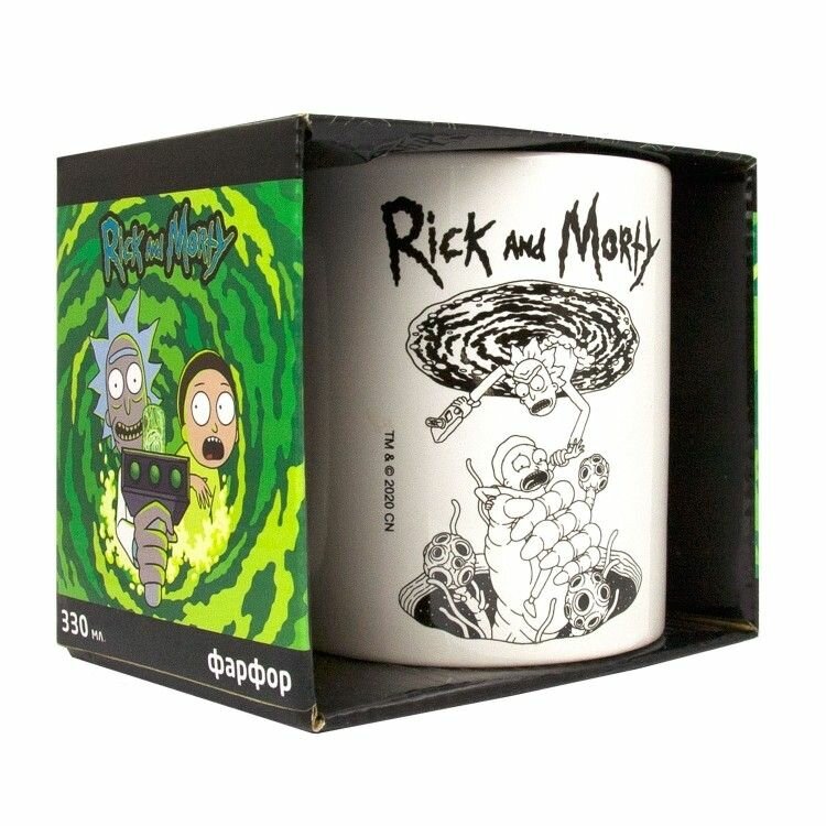 ND Play Кружка в подарочной упаковке Рик и Морти Рисованый портал 330 мл с изображением героев популярного комедийного мультсериала Рик и Морти - отличный подарок всем поклонникам приключений школьника по имени Морти и его дедушки Рика! Кружка фарфоровая с рисунком подходит для горячих/холодных напитков, позволит насладиться вкусовыми качествами любого напитка и будет радовать глаз. Объем кружки 330 мл, она выдерживает высокие температуры, гигиенична, не впитывает запахи. А лаконичный дизайн с изображением любимых персонажей кружки обязательно поднимет всем настроение. Пригодно для мытья в посудомоечной машине. Кружки с рисунком не рекомендуется мыть при помощи жестких абразивных моющих средств и подвергать длительному воздействию солнечных лучей. Особенности: Готовый подарок для поклонников Рика и Морти. Кружка из фарфора подходит для горячих и холодных напитков. Любимые герои будут поднимать настроение в течение дня.