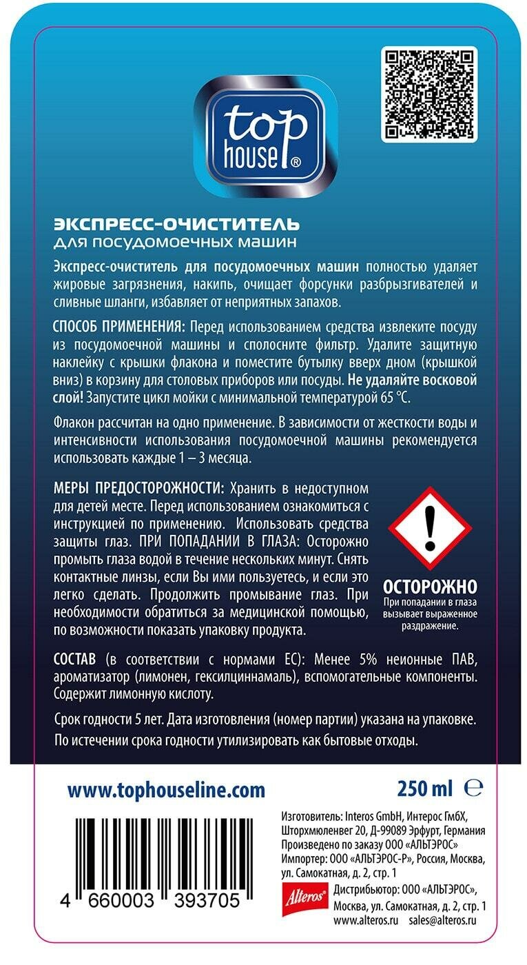 На сегодняшний день товар «Экспресс-очиститель для посудомоечных машин Top House 250ml Лимон лимон 250мл (393705)» можно купить с кешбеком в 1 магазине: Яндекс.Маркет