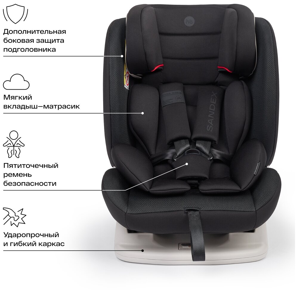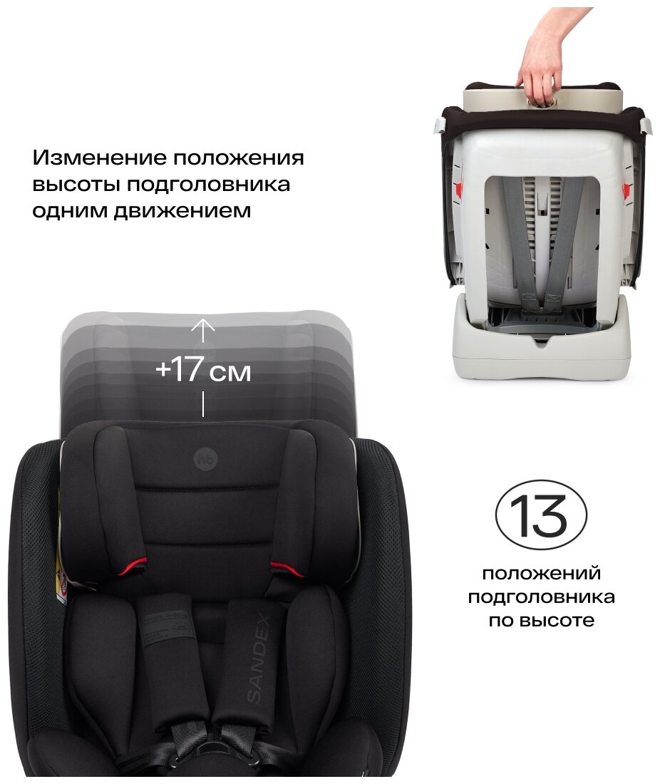 Автокресло SANDEX - это безопасность и комфорт в дороге, легкость установки и использования, обновленный дизайн и практичность. Эта модель прослужит вашему ребенку с самого рождения и до 12 лет, подстраиваясь под растущего малыша и взрослеющего ребенка. Съемная мягкая вкладка в сочетании с мягкими накладками на ремнях безопасности, с мягким настраиваемым по высоте подголовником с 13 положениями по высоте и 4 положения наклона спинки помогут подобрать идеальный вариант для максимального комфорта в пути. Когда малыш подрастет, снимите вкладку и получите большое посадочное место с защитой от боковых ударов, в котором не будет тесно в зимней одежде. За безопасность отвечают пятиточечные ремни безопасности. Съемный чехол легко снимается и прост в уходе.