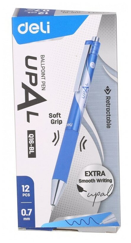 Упаковка ручек шариковых Deli авт. 0.7мм синий 12 шт./кор. EQ16-BL