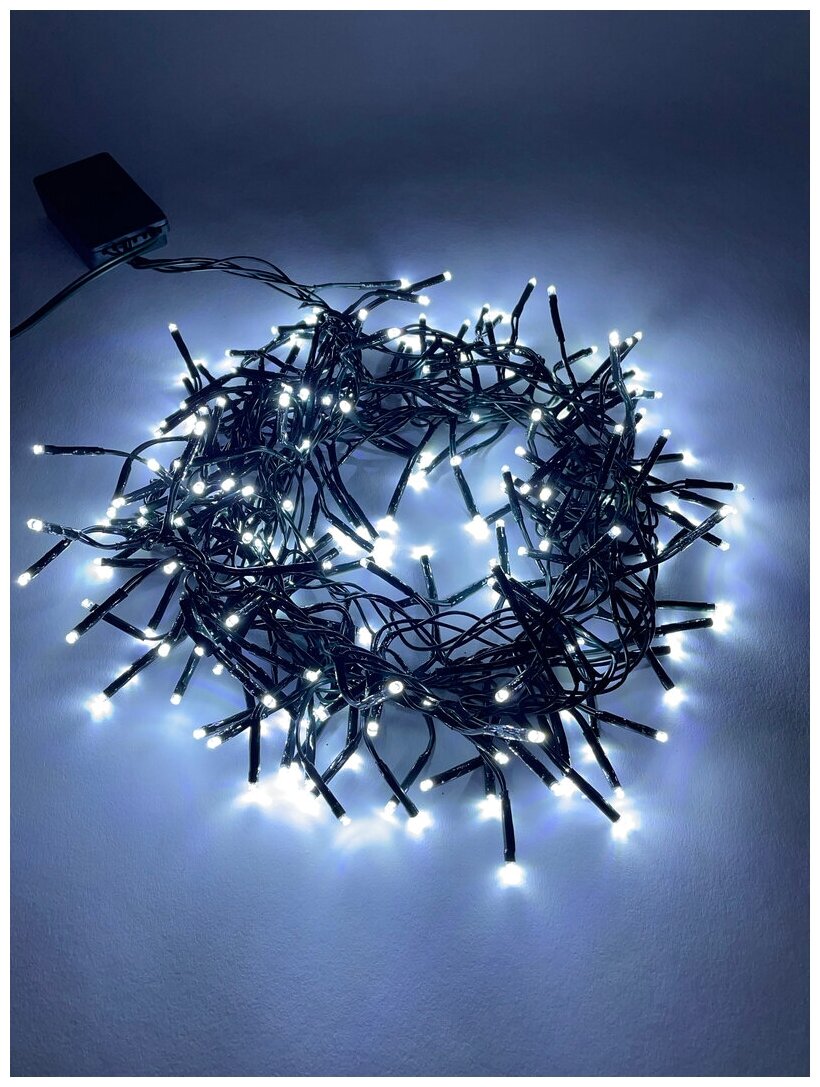 Новогодняя гирлянда-нить ЭРА "Мишура" с холодным белым светом отлично подходит для зимних праздников, в помещении она создает эффект мерцающего снегопада. Длина световой части - 2,4 метра, расстояние от вилки до первой лампочки - 1,5 метра. Гирлянда работает от стандартной электросети 220 В и потребляет минимальное количество электроэнергии. В ней установлено 200 светодиодов последнего поколения, это яркие и одновременно экономичные источники света. Гирлянда неслучайно называется "Мишура" - лампочки на ней расположены очень часто, ее свет выглядит объемно и "пушисто". Красивая и практичная LED-гирлянда ЭРА "Мишура" - идеальное решение, чтобы украсить елку, дом, создать атмосферу на праздничной вечеринке. Под настроение выбирайте любой из 8 режимов свечения.