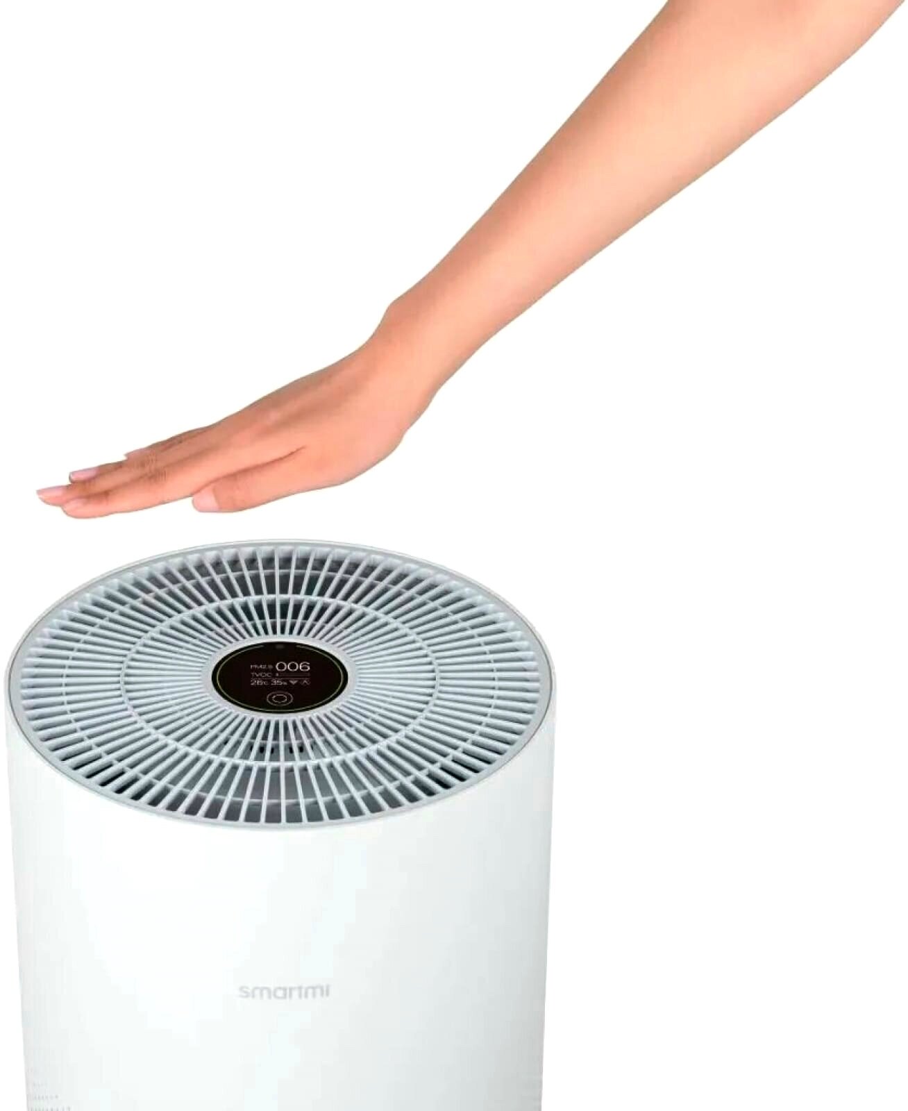 SmartMi оснащен встроенными датчиками вредных частиц – непрерывно анализирует окружающий воздух и автоматически подстраивает соответствующий режим очистки. Точный лазерный датчик обнаруживает окружающий уровень PM2,5, датчик TVOC показывает уровень концентрации вредных летучих веществ, а индикатор меняет цвета в соответствии с уровнем загрязнения воздуха в реальном времени.