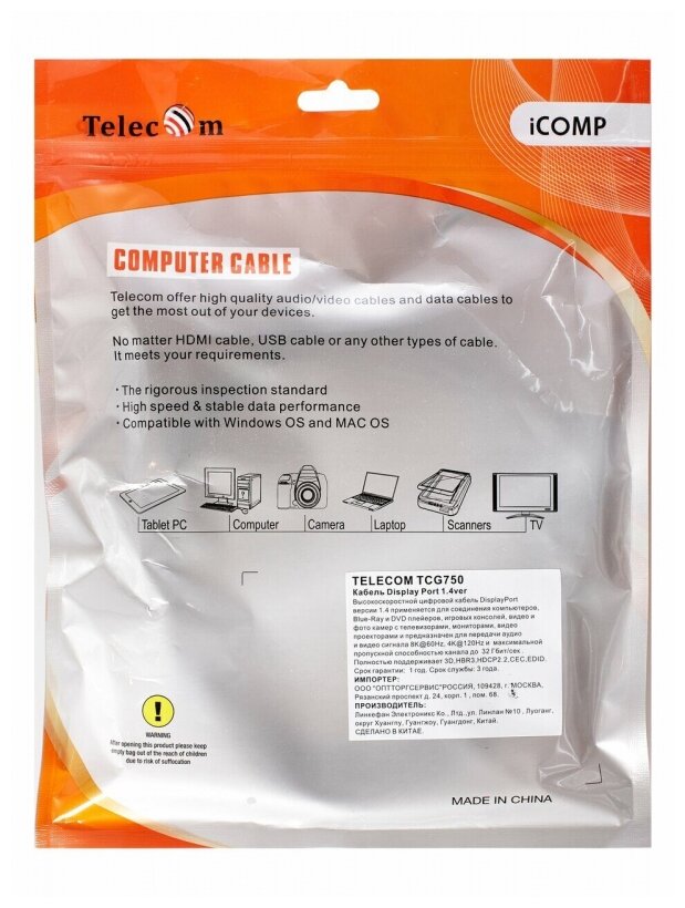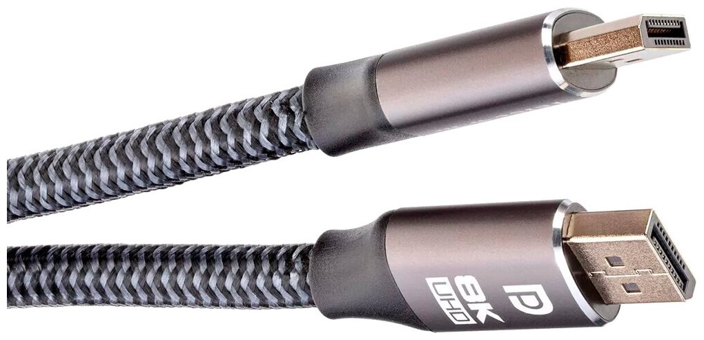 Высокоскоростной цифровой кабель DisplayPort версии 1.4 применяется для соединения компьютеров, Blue-Ray и DVD плейеров, игровых консолей, видео и фото камер с телевизорами, мониторами, видео проекторами и предназначен для передачи аудио и видео сигнала. Макс. пропускная способность канала до 32 Гбит/сек. Максимальное разрешение видео сигнала 8K@60Hz, 4K@140Hz. Полностью поддерживает 3D, HBR3, HDCP2.2, CEC, EDID.