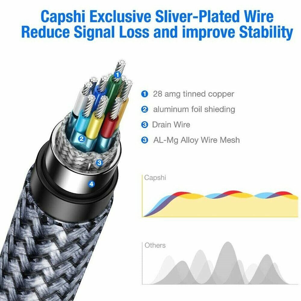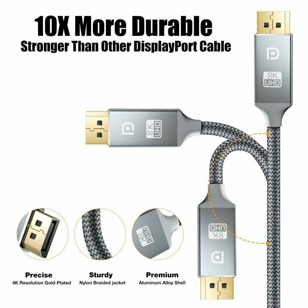 Высокоскоростной цифровой кабель DisplayPort версии 1.4 применяется для соединения компьютеров, Blue-Ray и DVD плейеров, игровых консолей, видео и фото камер с телевизорами, мониторами, видео проекторами и предназначен для передачи аудио и видео сигнала. Макс. пропускная способность канала до 32 Гбит/сек. Максимальное разрешение видео сигнала 8K@60Hz, 4K@140Hz. Полностью поддерживает 3D, HBR3, HDCP2.2, CEC, EDID.