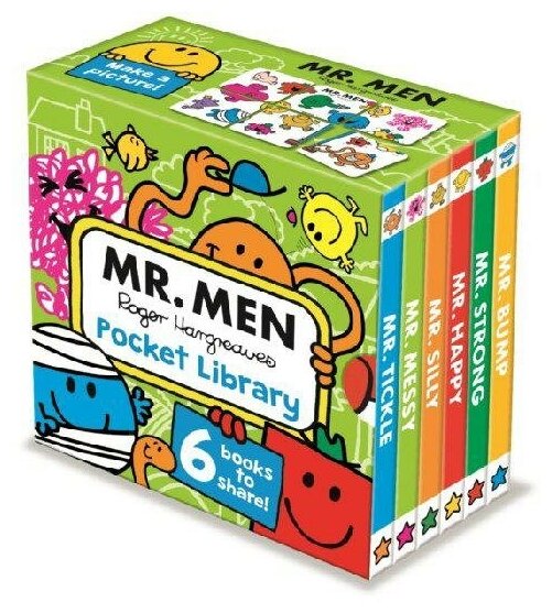 Welcome to the Mr. Men Pocket Library - the perfect first introduction for young children to these fun and zany characters! The slipcase, which is packaged in shrink-wrap, features six board book stories about Mr Happy, Mr Messy, Mr Silly, Mr Bump, Mr Strong and Mr Tickle.