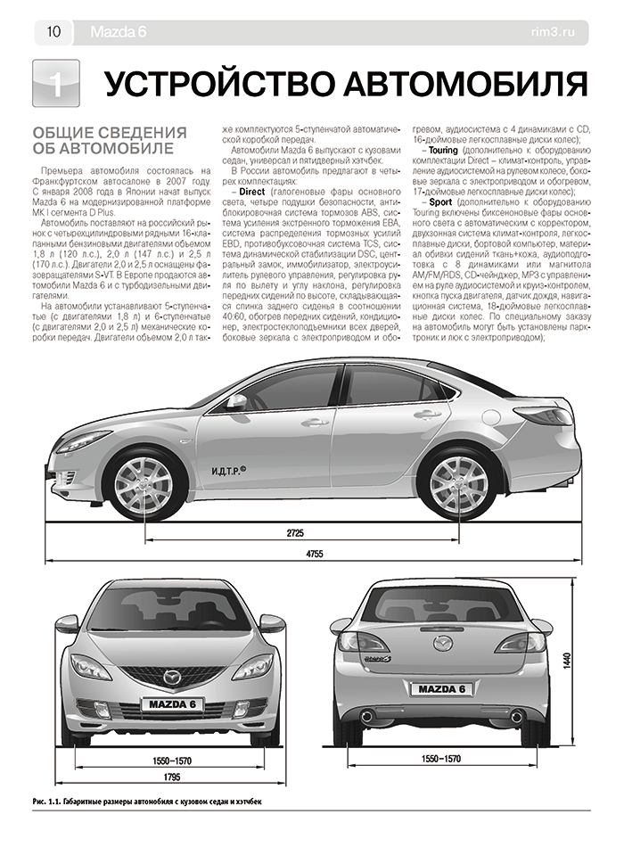 Предлагаем вашему вниманию руководство по ремонту и эксплуатации автомобиля MAZDA 6 с кузовами седан, хэтчбек и универсал, с бензиновыми двигателями объемом 1,8; 2,0 и 2,5 л. В издании подробно рассмотрено устройство автомобиля, даны рекомендации по эксплуатации и ремонту. Специальный раздел посвящен неисправностям в пути, способам их диагностики и устранения.