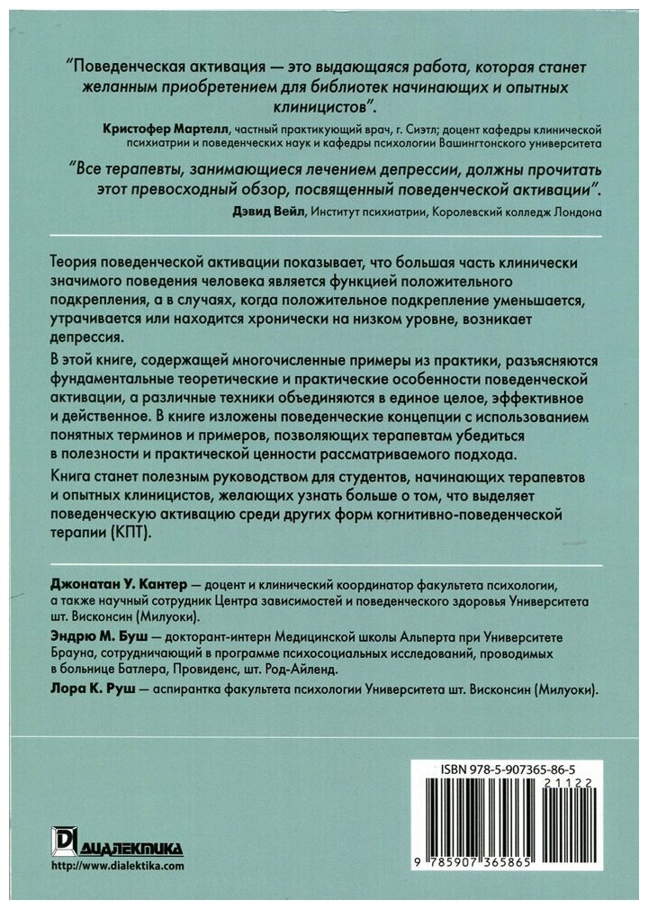 Поведенческая активация. Отличительные особенности (Кантер Джонатан; Руш Лора; Буш Эндрю); Диалектика-Вильямс, 2021