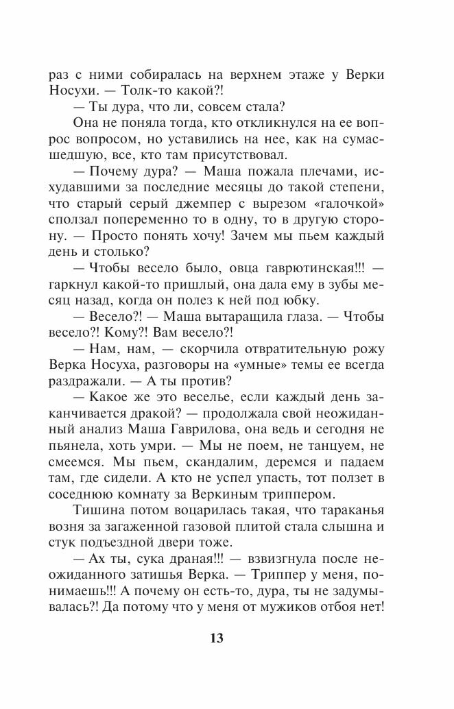 Детектив с захватывающим сюжетом. Все очень запутано. Кто преступник? Кто жертва? Удивило то, что это переиздание книги автора, написанной в далеком уже 2009 году, но этот роман не потерял актуальность. Кажется, что все происходит сегодня и сейчас. Характеры героев прописаны точно и узнаваемо - настолько в чем-то неизменна российская действительность. Хамка и хабалистая тетка Марго вызывает отторжение. И ведь никто не может поставить на место эту запредельно наглую бабу, которая походя ломает судьбы людей. Эмма Быстрова интеллигентна, умна. Правда, я совершенно не поняла, почему она осталась с Сергеем. Последний, может, и неплох, но вот не вызывает уважения, слизняк какой-то... Понравилась парочка Орлов - Удалова. Умные, сдержанные, отстаивающие свое мнение... Жаль было бестолковую Машку Быстрову. Флэшбэки, сеттинг автором продуманы. Читается книга с интересом, отложить ее желания не возникает.