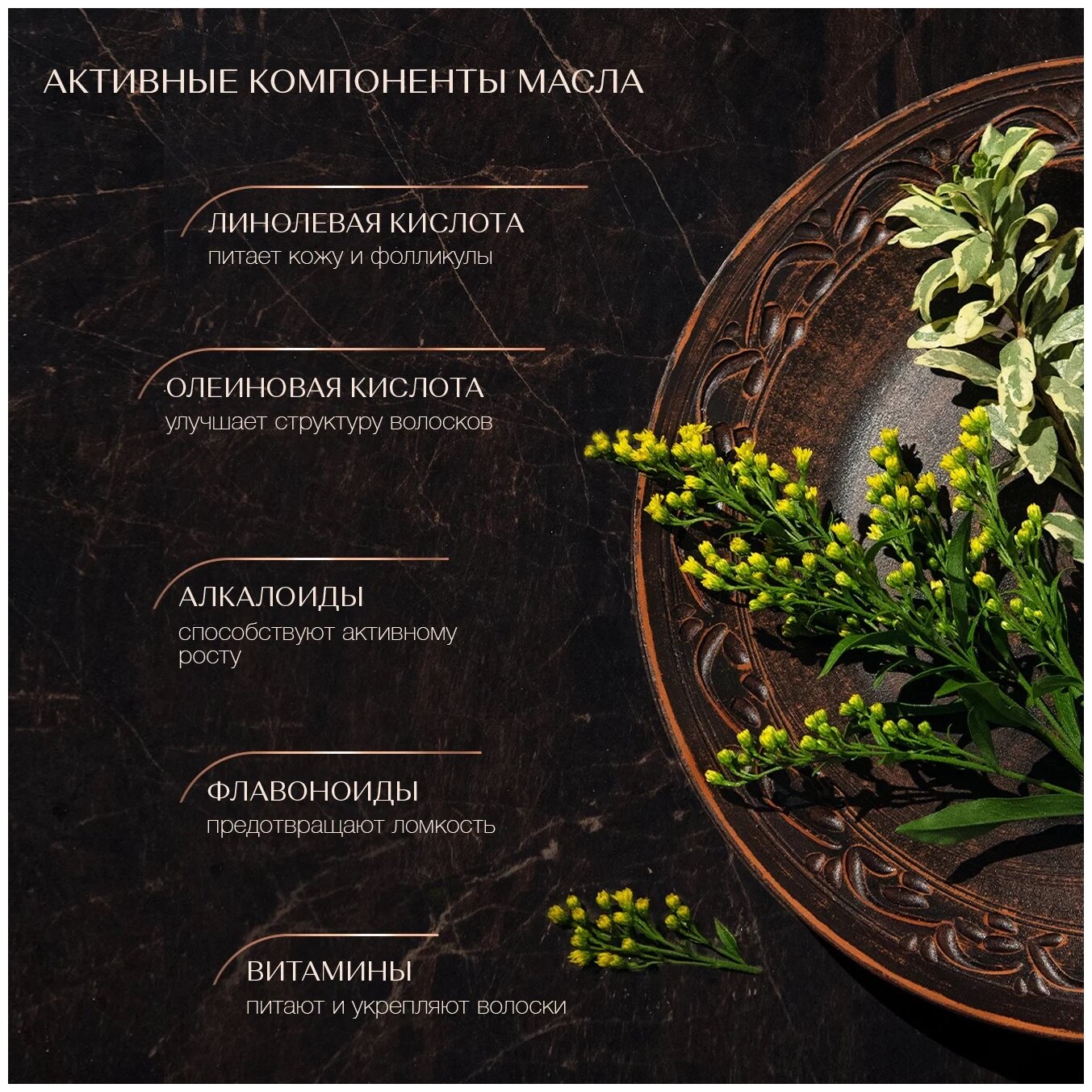 Доверьте борьбу за густоту и роскошь волос средству, эффективность которого проверена веками. 100% натуральное и чистое масло усьмы – это продукт премиального качества, феноменально эффективное укрепляющее средство против выпадения волос и один самых мощных стимуляторов их роста. Помимо укрепления волосяных фолликулов усьма также заметно улучшает состояние даже самых светлых и редких бровей и ресниц, до 2-3 раз увеличивает их густоту за счет стимулирования "спящих" луковиц". Эффект от применения масла усьмы заметен уже в первую неделю применения, а вы с первых же дней обретаете уверенность в силе своих волос.