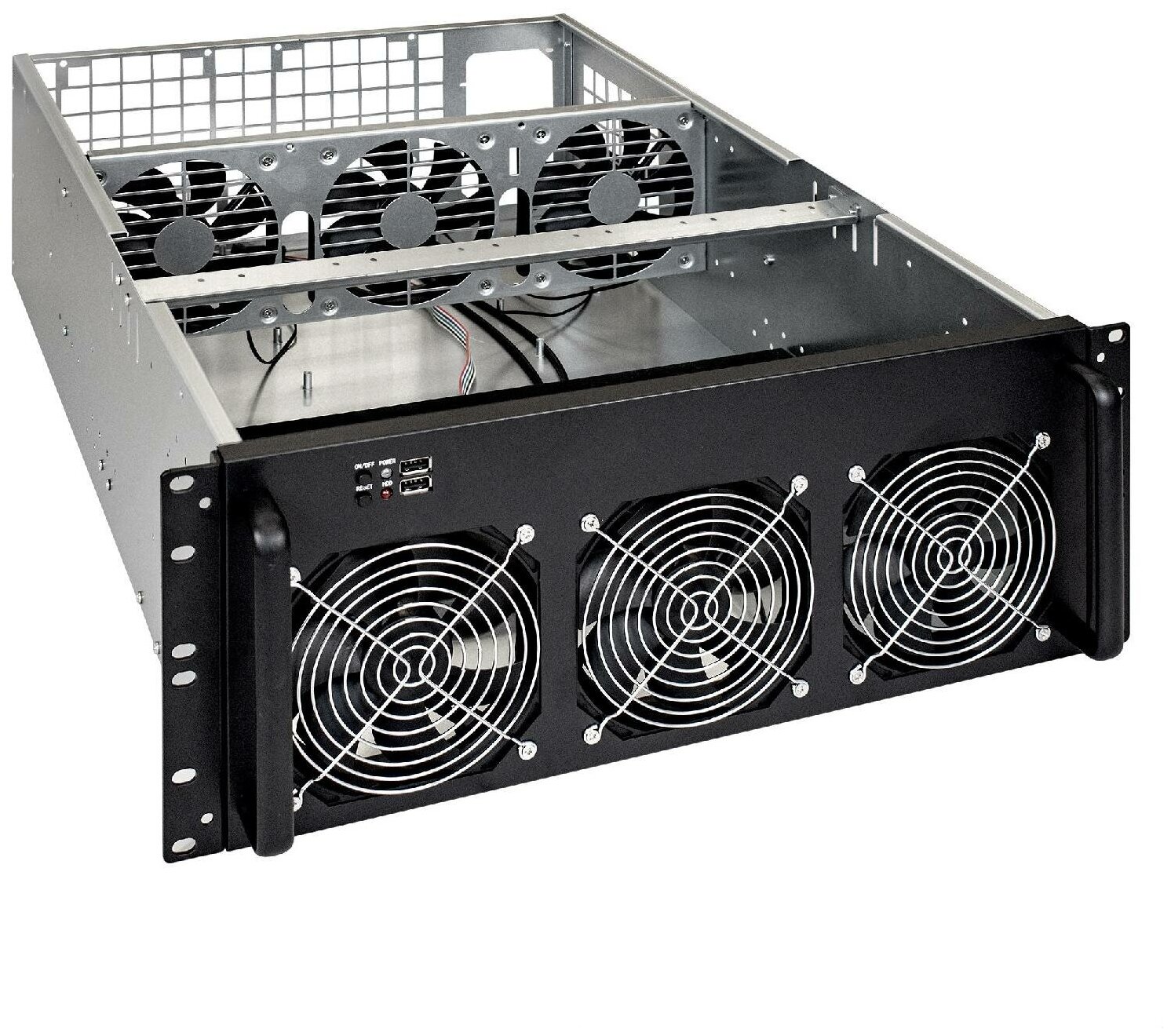 | Прочие особенности и свойства | Тип корпуса Для майнинга, Тип материнской платы ATX, Количество видеокарт 8, Цвет Черный, Установка в стойку 4U, Максимальный размер материнской платы, мм 305 x 244, Отсеки для накопителей 1 x 3,5 или 1 x 2,5 |
