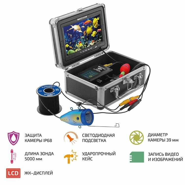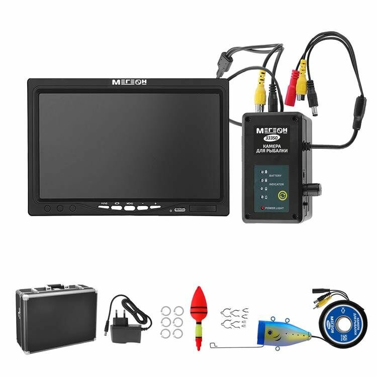 | Комплектация | 1. Монитор - 1 шт., 2. Блок коммутации - 1 шт., 3. Кабель с камерой в катушке 50 м - 1 шт., 4. Зарядное устройство - 1шт., 5. Поплавок - 1 шт., 6. Комплект колец - 1 шт., 7. Козырёк - 1 шт., 8. Комплект зажимов - 1 шт., 9. Кейс - 1 шт., 10. Карта SDHC 8 Гб - 1 шт., 11. Руководство по эксплуатации - 1 экз., 12. Гарантийный талон - 1 экз. |