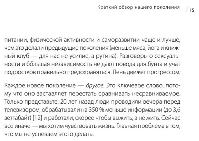 Прекрасная self-help книга, настолько простая и легкая в прочтении, одновременно затрагивает достаточно яркие на сегодняшний день моменты жизни. Начнем с выделения групп поколений, то есть бумеры, миллениалы и зумеры. Я прихожусь поколению Z. Автор книги рассказывает как раз про молодёжь - это поколение миллениалов и мое - зумеров. Эта книга даст море ответов этим людям.