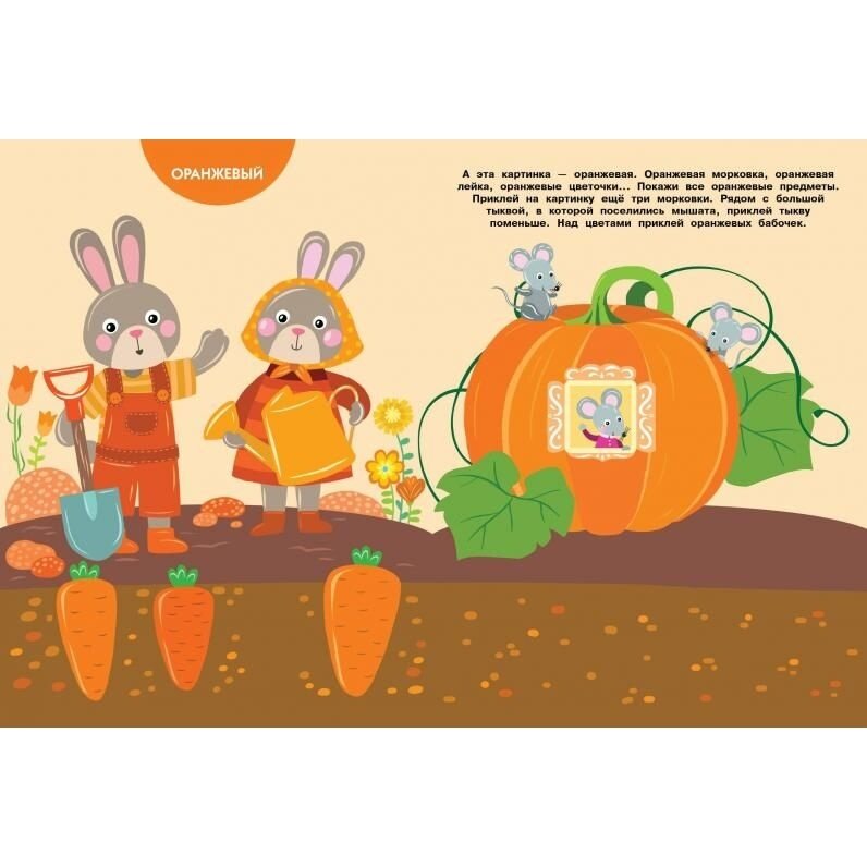 Давай изучать цвета? Всё, что окружает нас в жизни, имеет свой цвет. В этой книжке ты узнаешь пять основных цветов - зелёный, жёлтый, синий, красный и оранжевый. Приклеивай на странички картинки нужного цвета, находи этот цвет на рисунках - и ты быстро всё запомнишь. А наши яркие, крупные наклейки помогут в этом! Наклейки в книжке многоразовые, поэтому можно приклеивать их снова и снова. Придумывай истории с героями книжки, играй и учись!