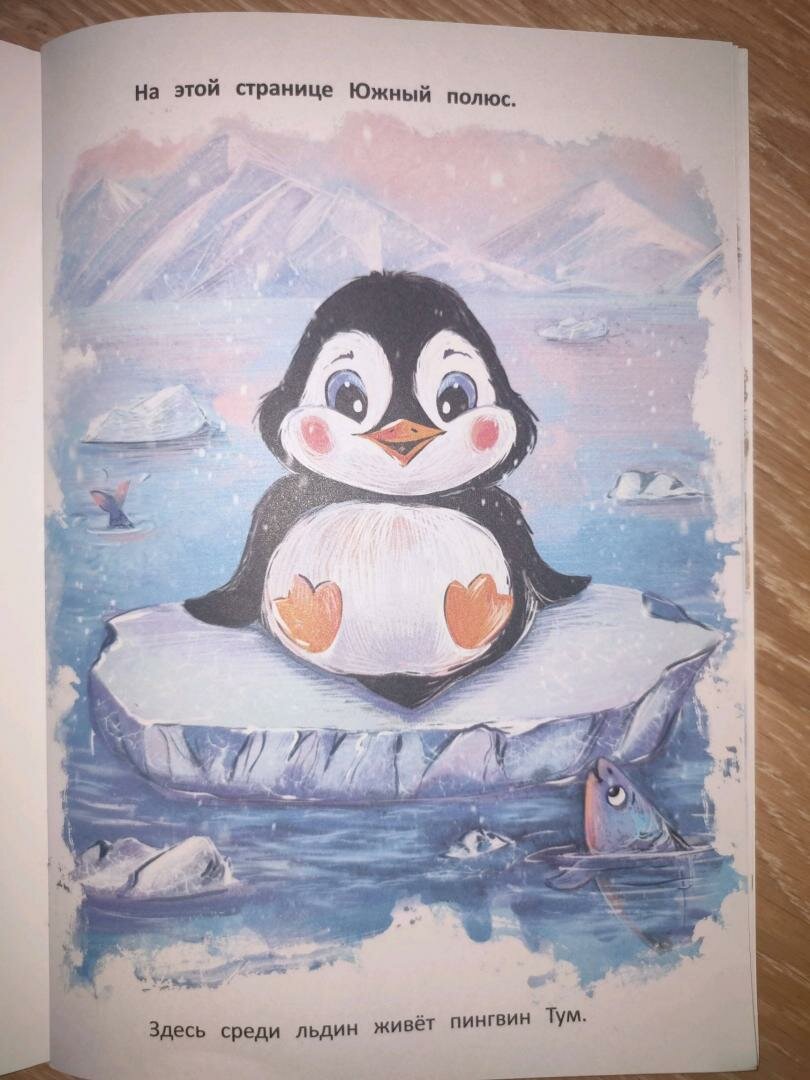 Отличная книга для первого знакомства малышей с окружающим миром и счётом. Ребят ждёт знакомство с пингвиненком Тумом и путешествие по южному полюсу, пустыне, горам, лесу, джунглям, полю, в которых Тум найдет новых друзей - верблюда, горных козлов, медведей, мартышек, мышек.