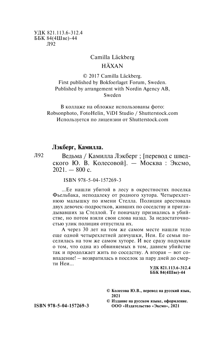 Книга: Ведьма (Камилла Лэкберг); Эксмо, Редакция 1, 2021