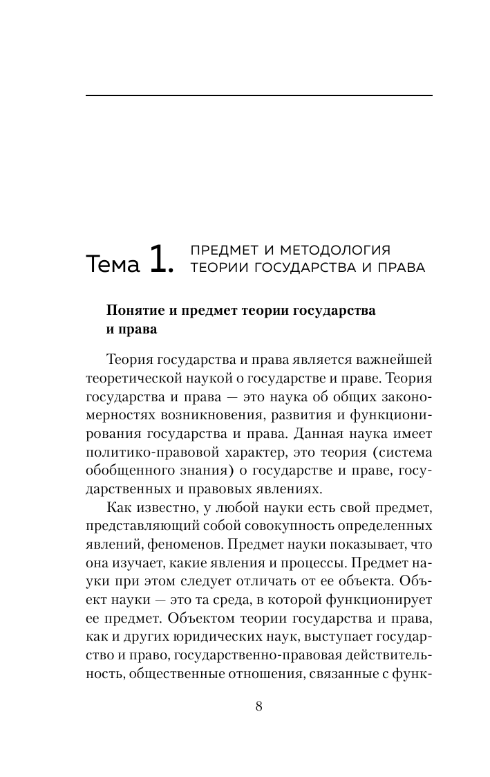 Для студентов юридических факультетов данное пособие идеальное. Покупала для подготовки к экзамену и ни разу не пожалела. Все написано очень понятно и корректно, без лишней воды, профессионально. Автор помог во многом разобраться, закрыть пробелы и воссоздать полноценную картину о дисциплине и науке в целом - Теории государства и права. Информация расположена в простом формате, не перегружено, идёт постепенно.