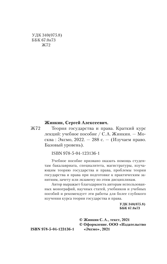 Теория государства и права. Краткий курс лекций (Жинкин Сергей Алексеевич); ООО "Издательство "Эксмо", 2022