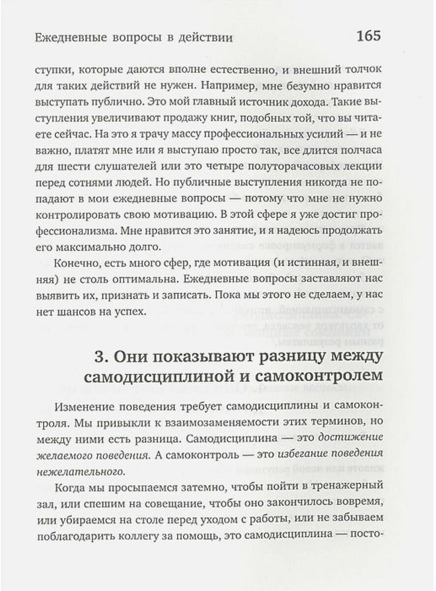 Если вы давно ловите себя на мысли, что «нужно что-то менять» и «так больше жить нельзя», эта книга определенно для вас. Автор уже долгое время работает коучем и за свою карьеру видел немало как успешных, так и не очень благоприятных преображений. Если вам хочется быть в числе людей, которыми восхищаются и которые не имеют больших сожалений о том, чего не сделали, — вам точно понравится эта книга. Меня особенно зацепило то, как автор ненавязчиво предлагает испробовать разные методы самосовершенствования, не зацикливаясь на одной концепции. При этом он очень четко отвечает на вопрос, как стоит улучшать свою дисциплину и где находить мотивацию на большие свершения.