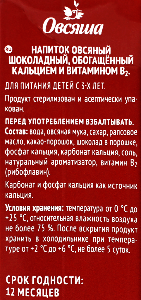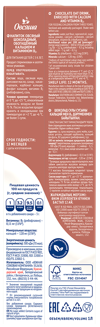 Растительные продукты Овсяша »