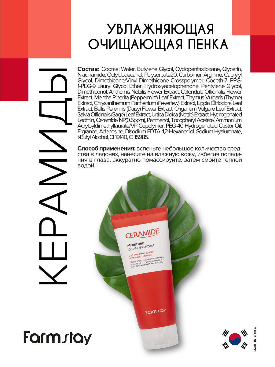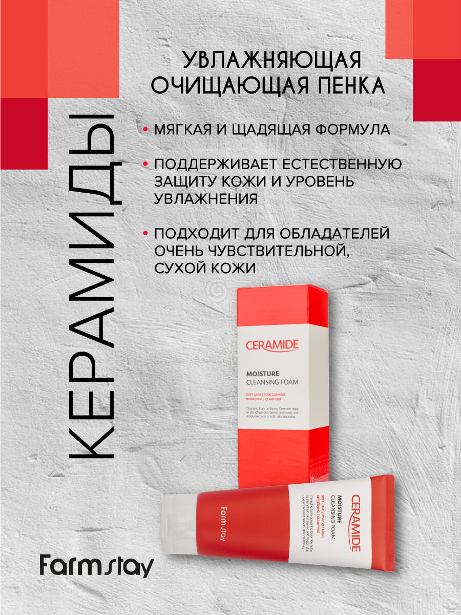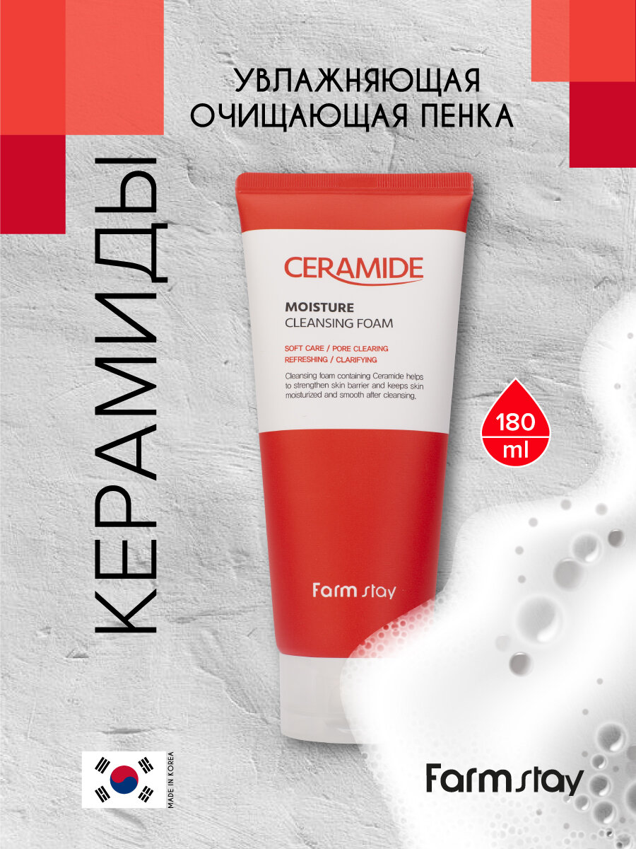 Пенка FarmStay очищающая увлажняющая с керамидами 180мл
