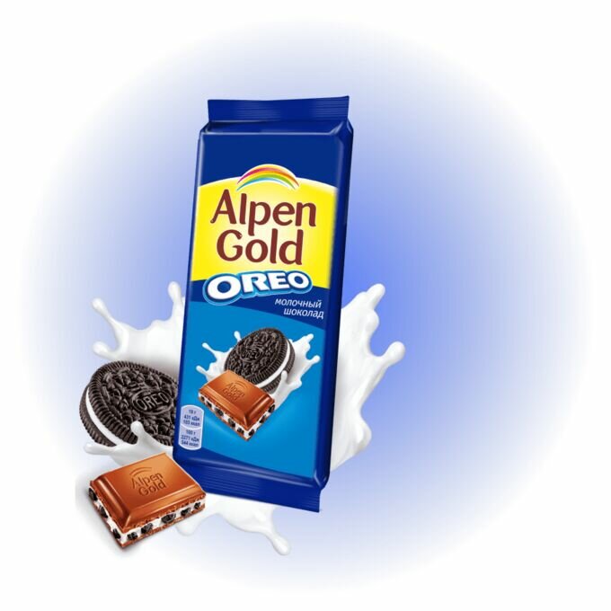 Шоколад Alpen Gold Молочный с печеньем Oreo 90г