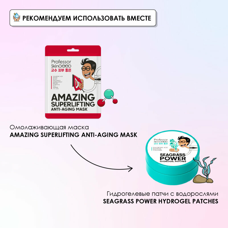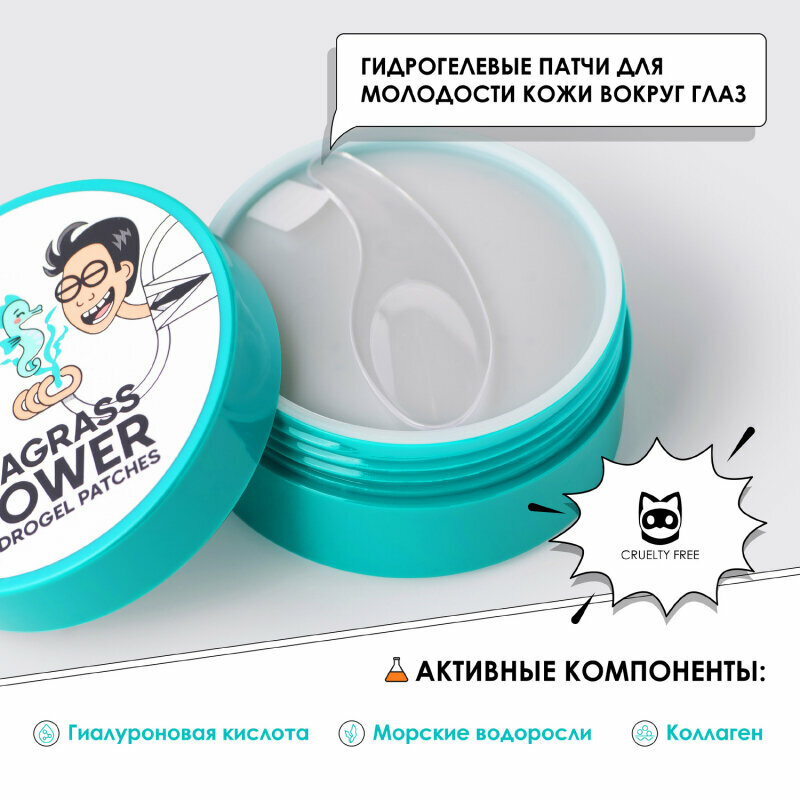 Патчи под глаза в банке Seagrass Power Hydrogel Patches от Professor SkinGOOD (Профессор Скингуд) состоят из инновационного материала гидрогеля, который благодаря своей плотной текстуре и высокой контактности с кожей создает эффект вакуума, усиливая действие всех компонентов, а также компрессионный эффект, уменьшая отеки, мешки и темные круги под глазами.