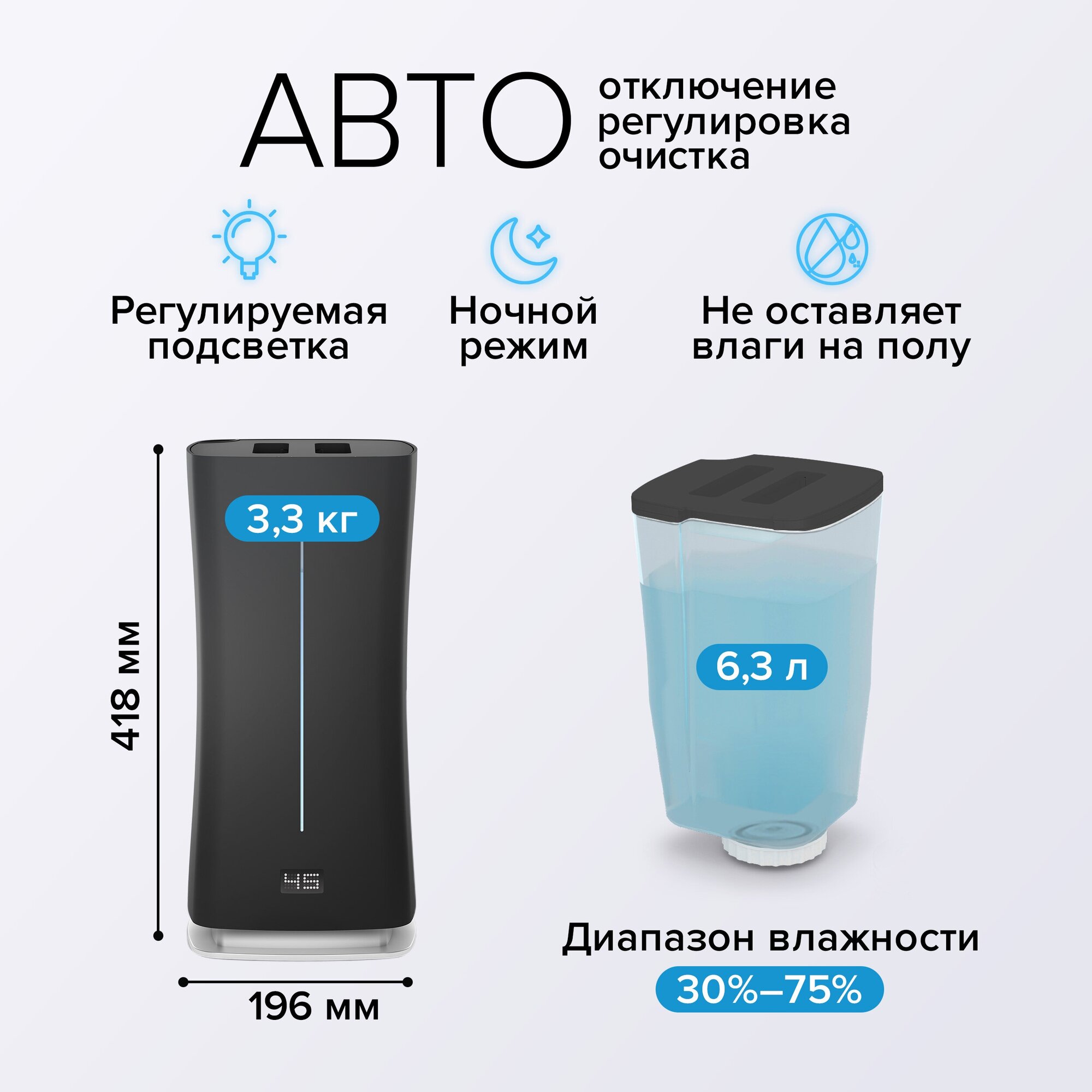 | Режимы работы | автоматический, ночной режим, автоматическое поддержание влажности, ручной выбор мощности, большой пар |